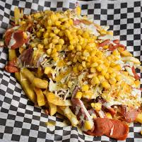 papa salchicha suiza papa chongo queso maiz lechuga salsas de la casa