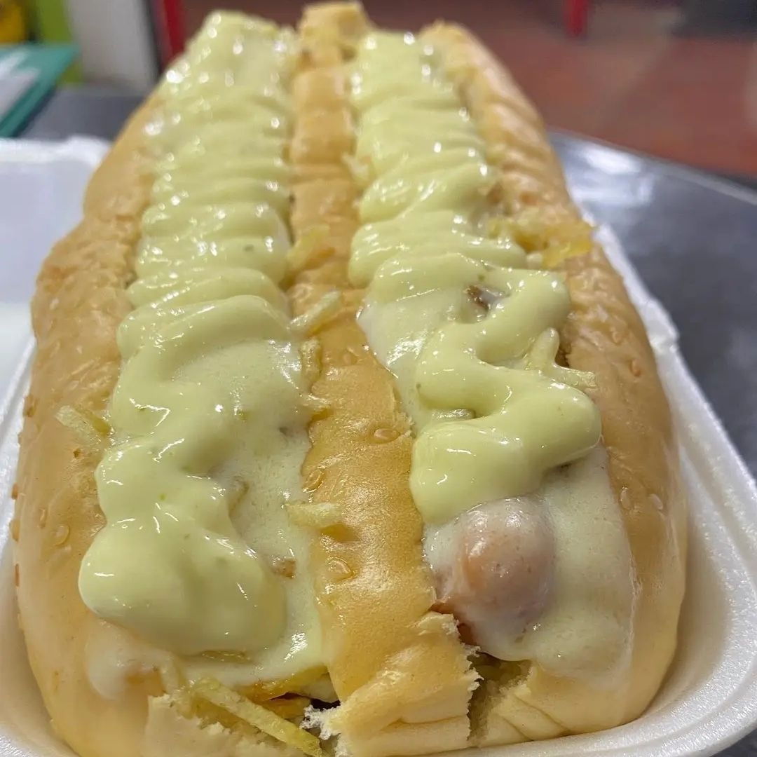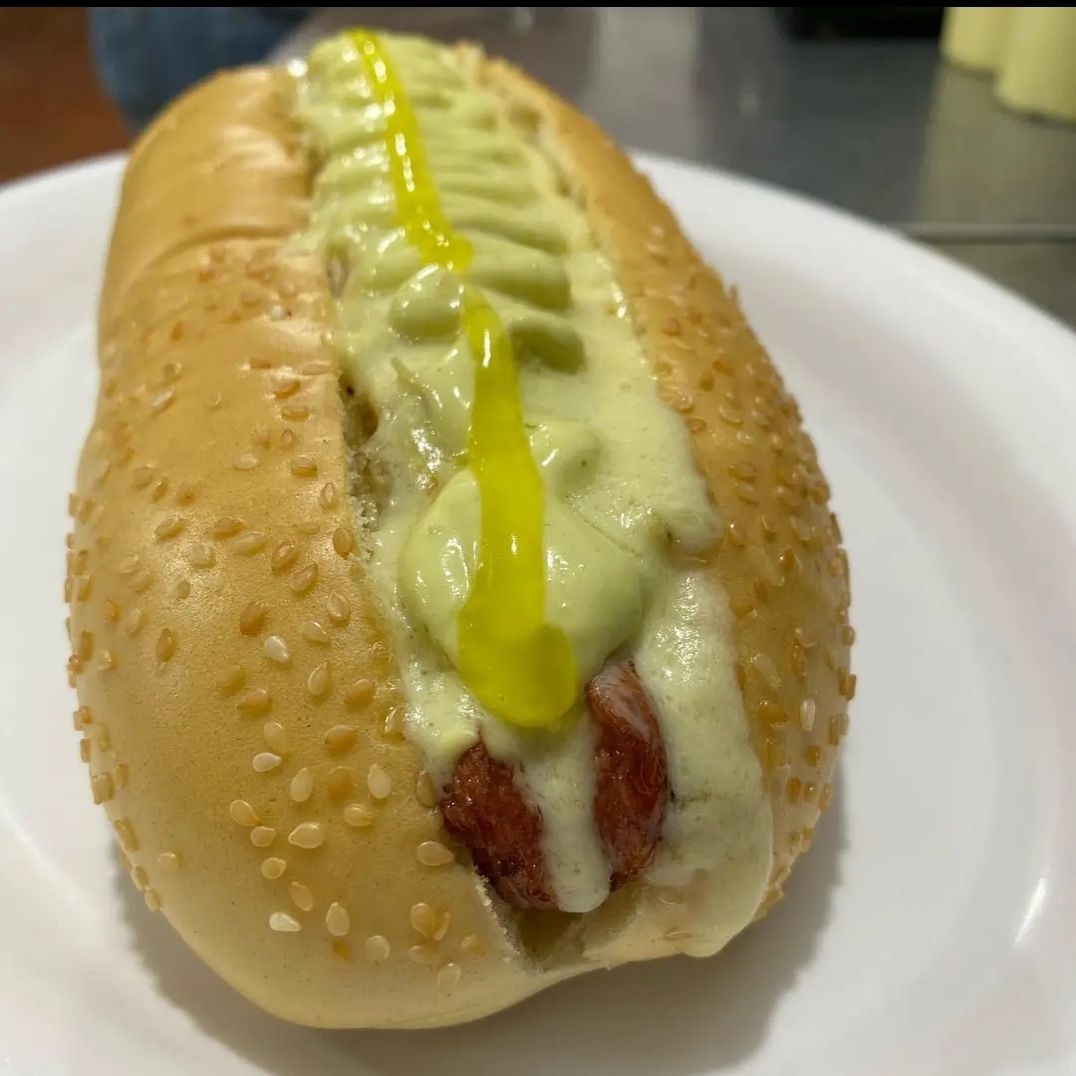 Pan, doble salchicha. Queso mozarella, chongo y salsa de la.casa