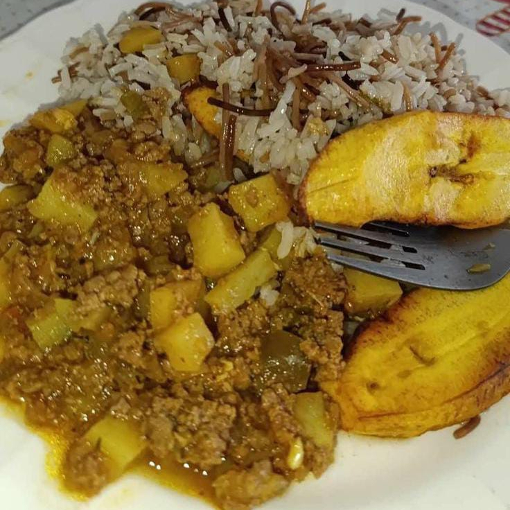 acompañado de arroz ensalada tajdas granos y guarapo