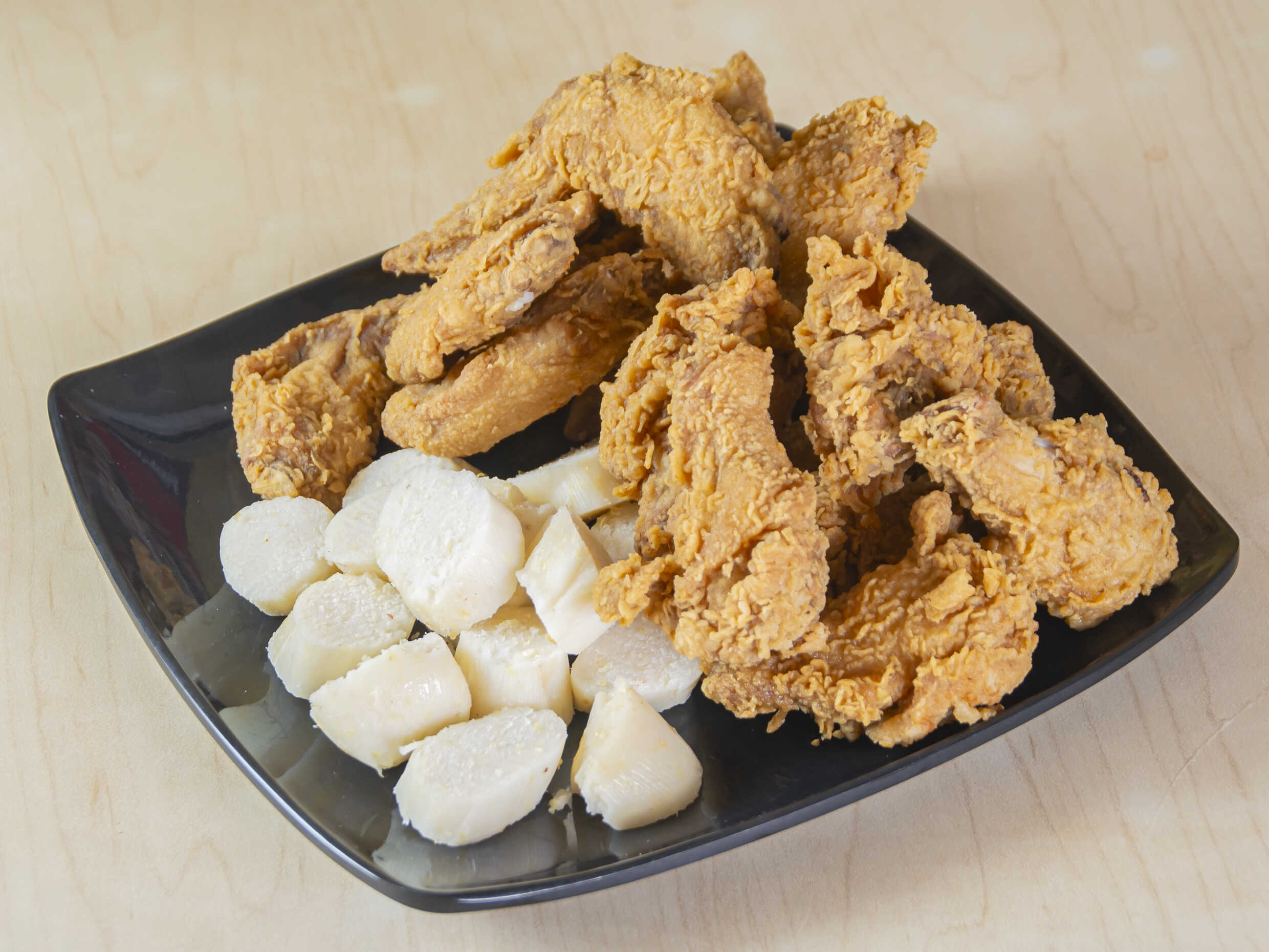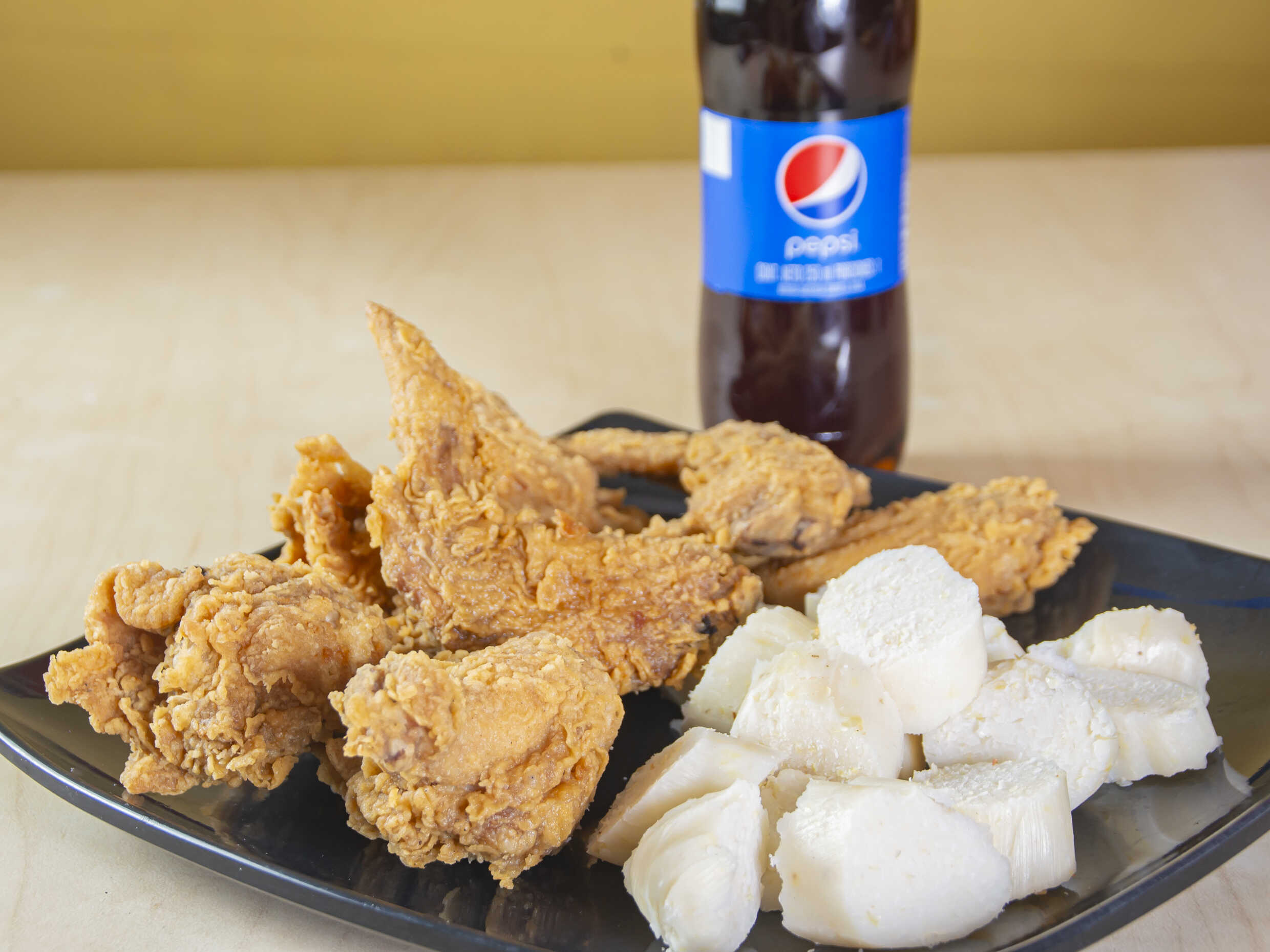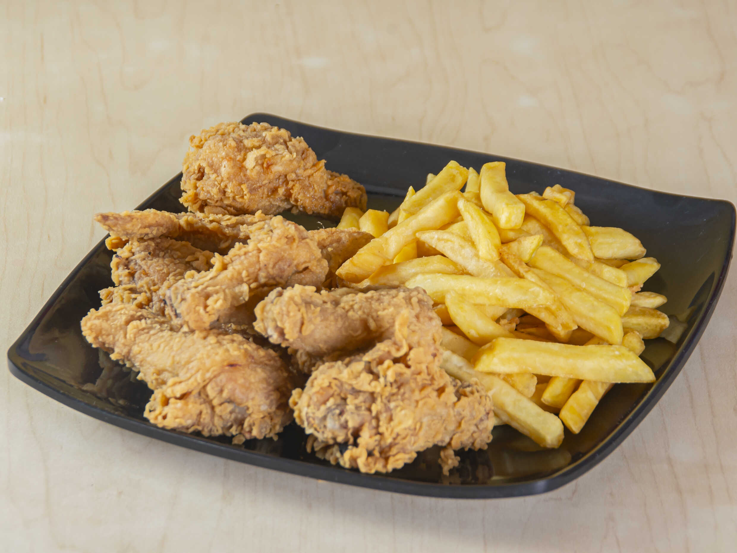 Alitas 4 ud, 200 g crispetas de pechuga apanadas, papas a la francesa, 4 yuquitas fritas y gaseosa 250 ml a elección.