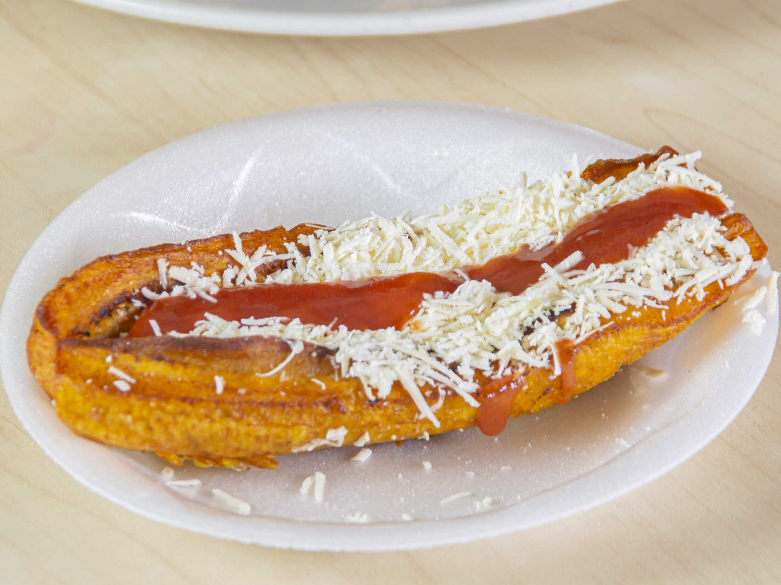 Plátano maduro relleno de queso costeño y bocadillo.