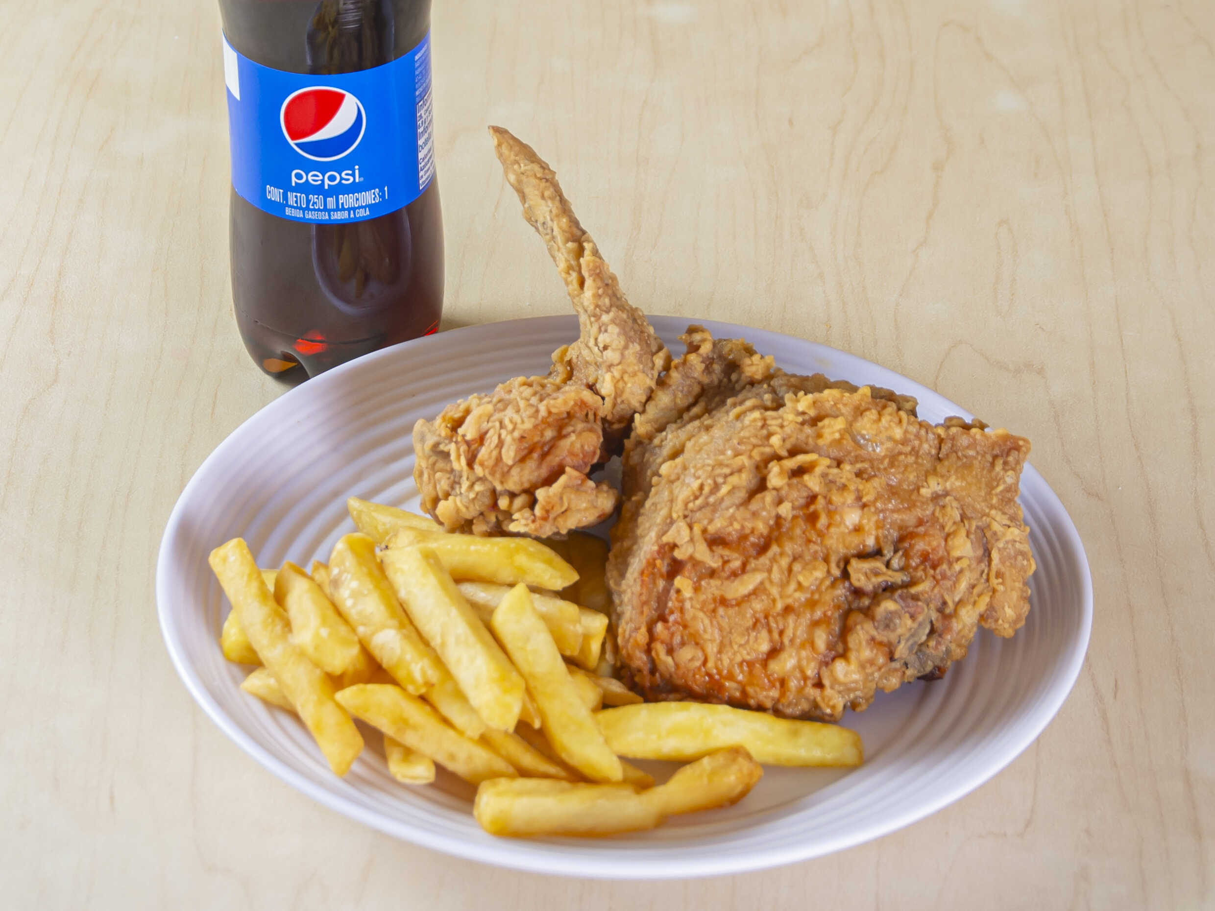 Broaster 2 Presas*1 + Papas a la Francesa*1 + Gaseosa Pet 250 ml*1