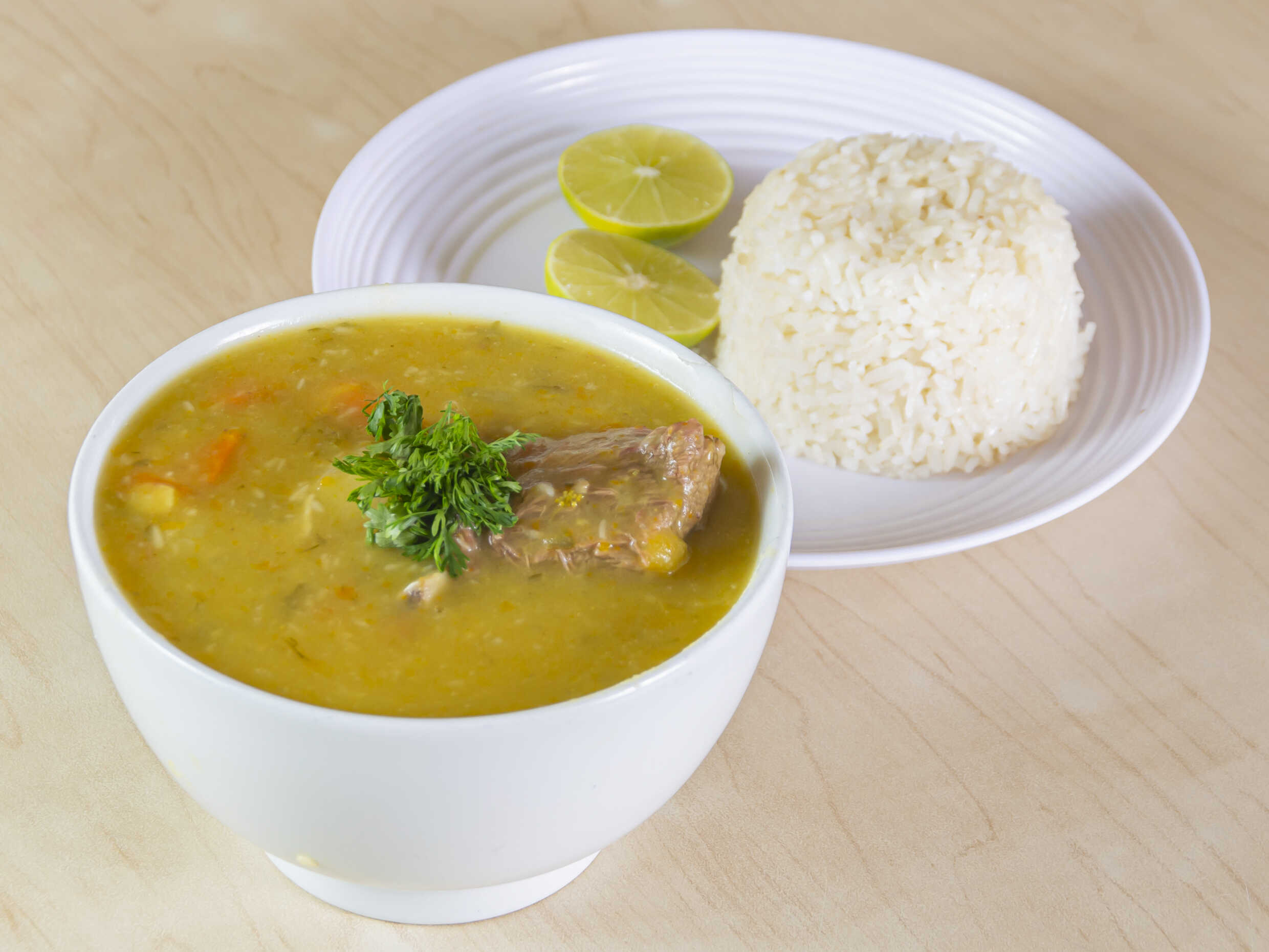 Sancocho de costilla (sancocho, arroz blanco, aguacate).