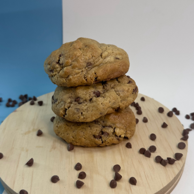Nuestra galleta de chips de chocolate es una galleta suave por dentro y crujiente por fuera con deliciosos chips de chocolate semi amargo que se derriten en cada bocado. ¡el clasico que nunca falla!