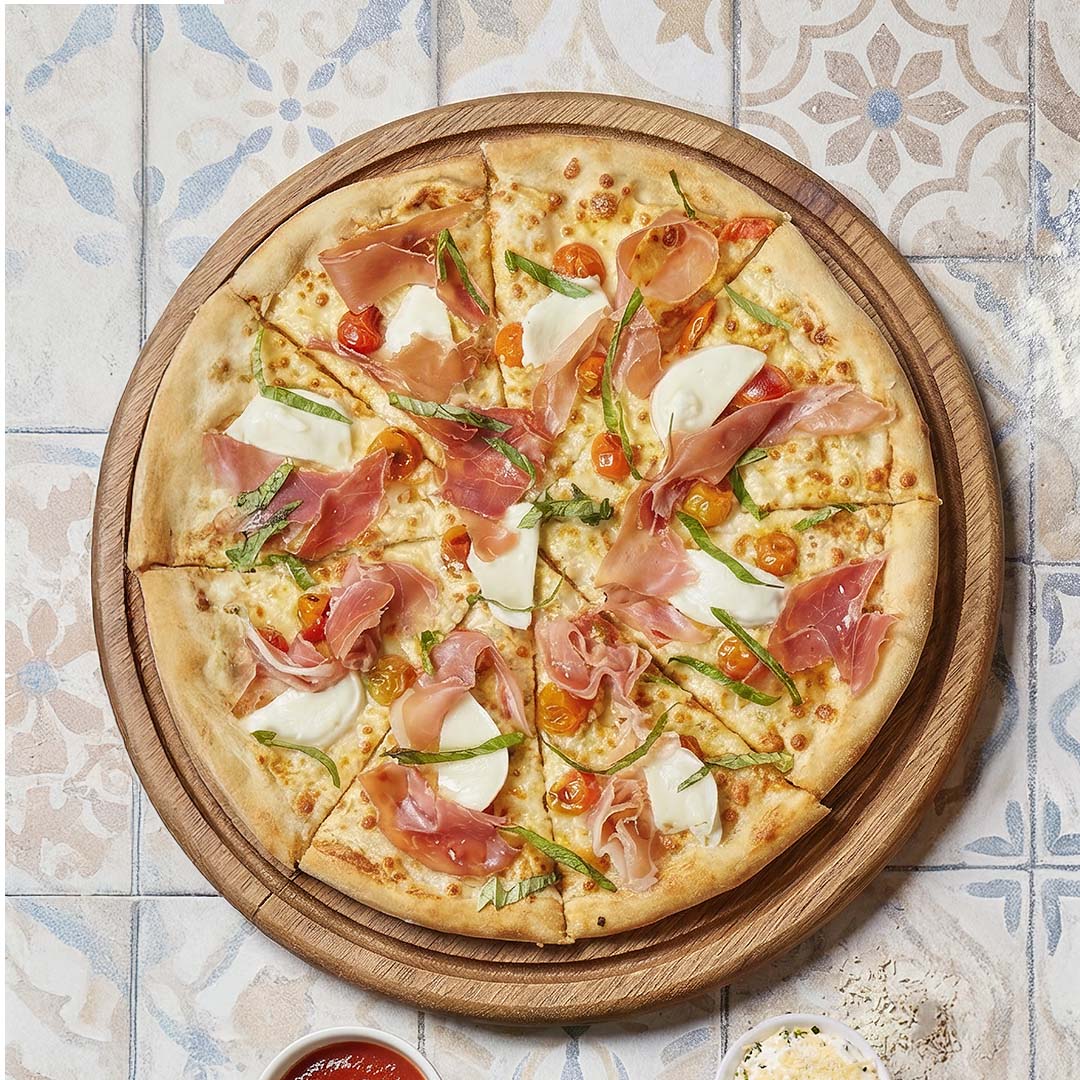 PIZZA BÚFALA, PROSCIUTTO Y POMODORO