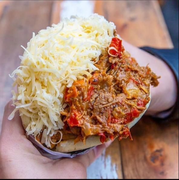 Arepa de maíz, rellena de carne desmechada, queso costeño, salsa de la casa, se puede añadir las siguientes proteínas, pollo, carne, butifarra, chorizo.