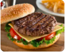 Hamburguesa sencilla 130 g de carne, queso mozzarella, cebolla, tomate y salsa de la casa.