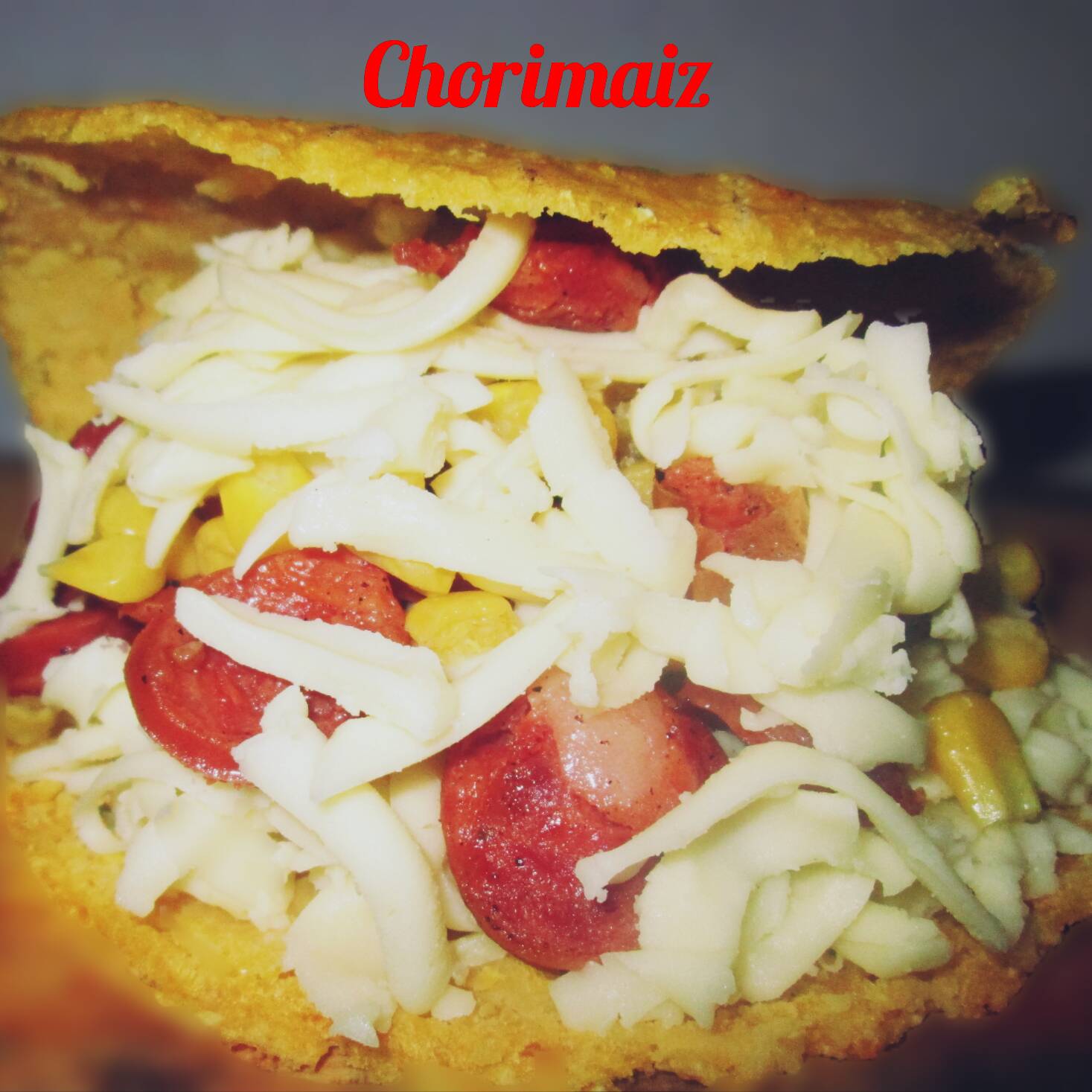 Arepa de maíz, rellena de chorizo, pollo desmechado, queso, salsa de la casa, se puede añadir las siguientes proteínas, pollo, carne, butifarra, chorizo.