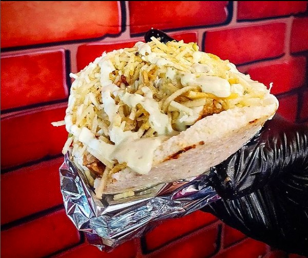 Salchicha suiza, pollo desmechado, queso mozarella, tocineta, queso costeño, salsas de la casa, chimichurri, papas crispy