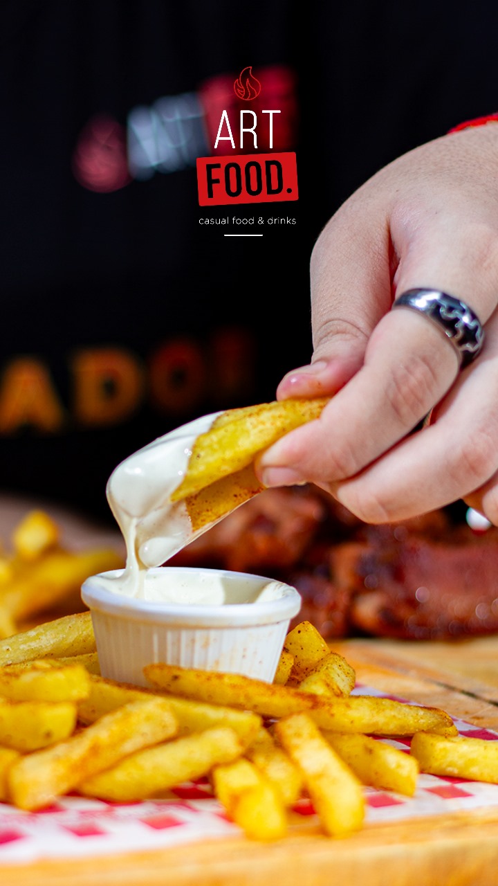 Crujientes papas fritas adobadas y acompañadas de nuestra exquisita salsa de la casa.