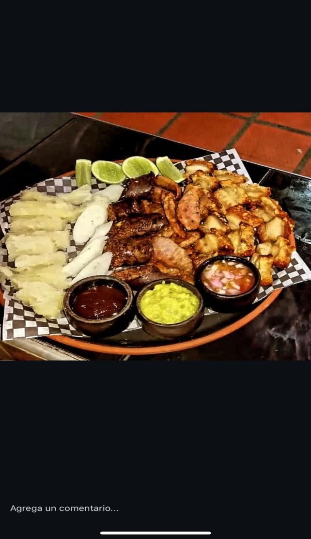 Delicioso chicharrón jugoso, chorizo, morcilla, acompañados de yuca, bollo limpio y nuestra especial salsa de la casa.