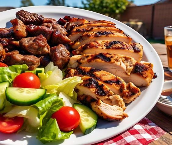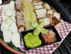 Delicioso asado de pechuga y carne hecha al barril, acompañada de ensalada fresca de lechuga, tomate, cebolla, vinagreta especial y bollo limpio.