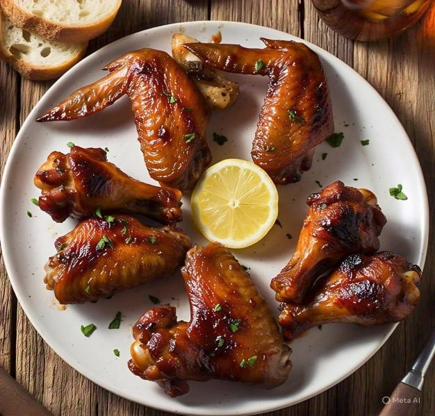 6 Unidades de alitas o muslitos, adobadas en salsa swing, bañadas en nuestra deliciosa salsa BBQ especial de la casa, acompañadas de bollo limpio o adicional de papas a la francesa.