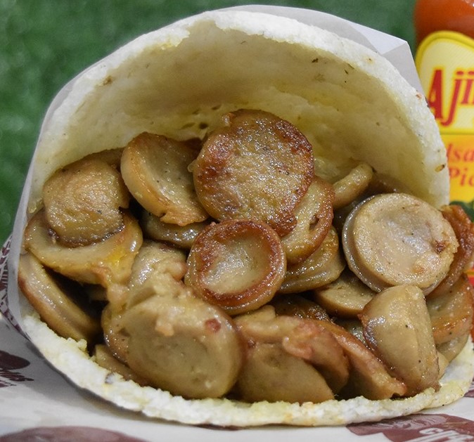 Pan artesanal, salchicha suiza, queso costeño, lechuga, papa chongo, salsa tártara.