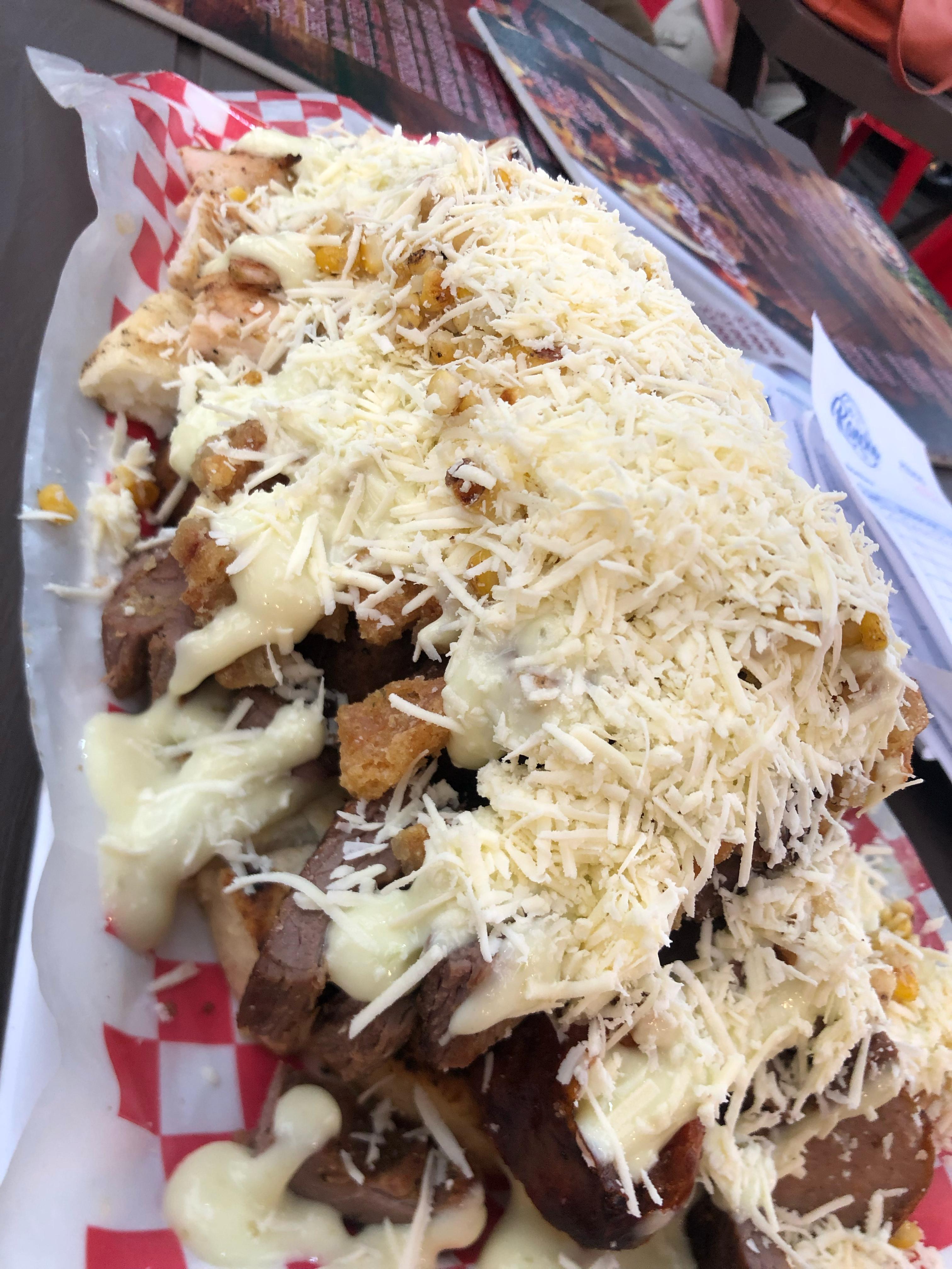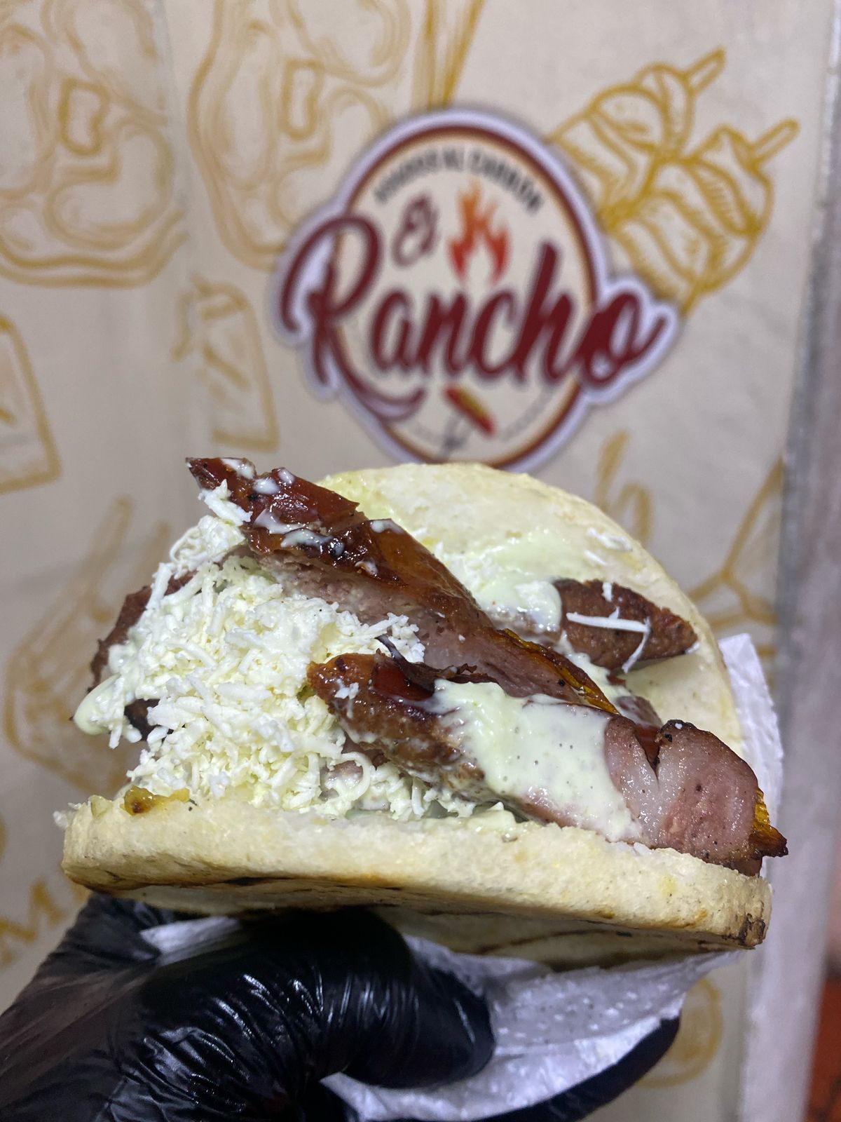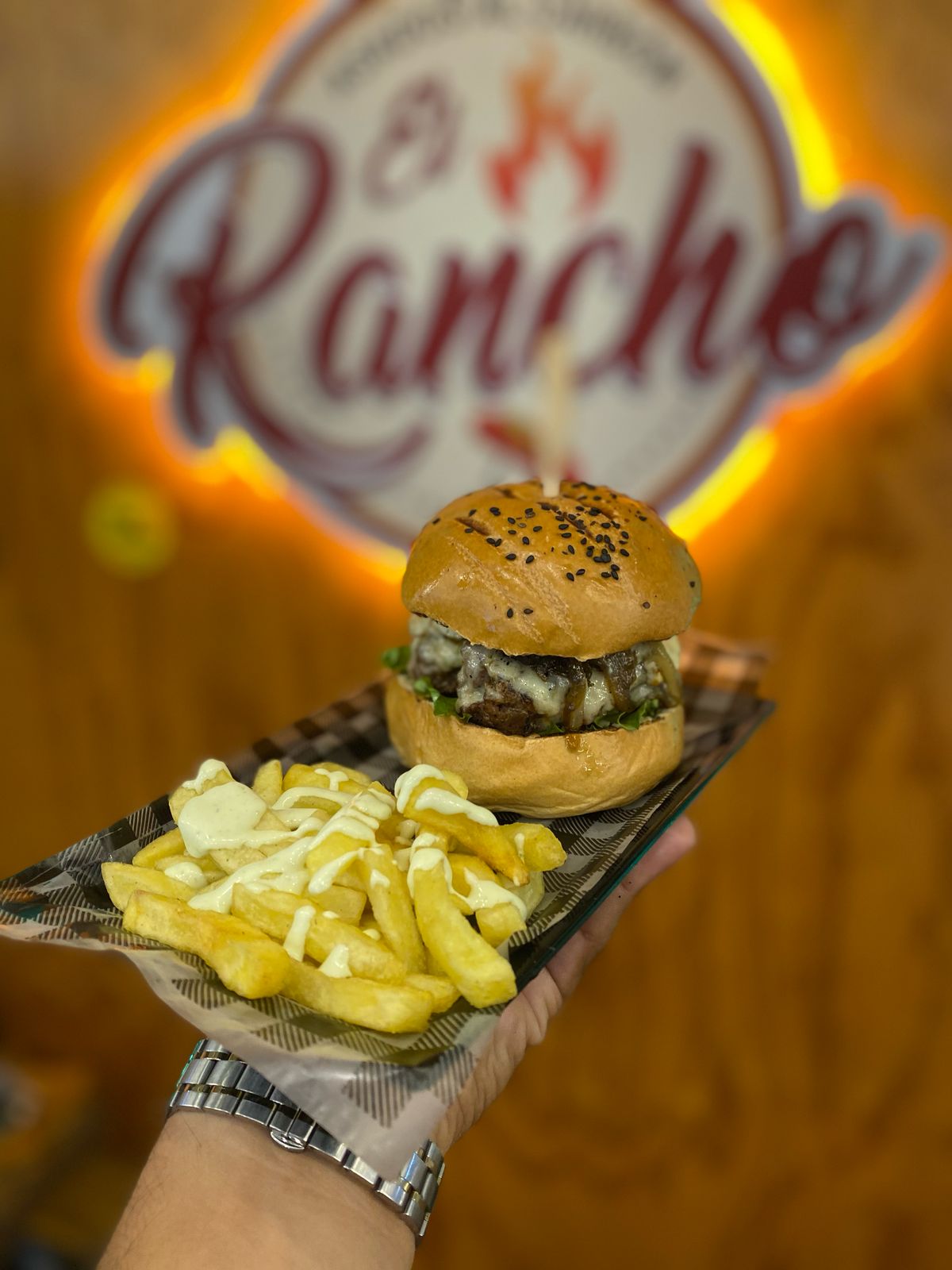 150 g De carne de res, chorizo, chicharrón, papas a la francesa, queso mozzarella, tomate, lechuga crespa, salsas.