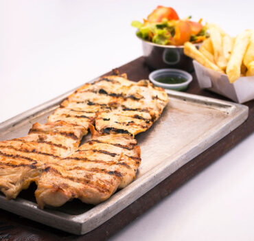 Pechuga asada 350 g acompañado de papa cocida, yuca y salsa de ajo.