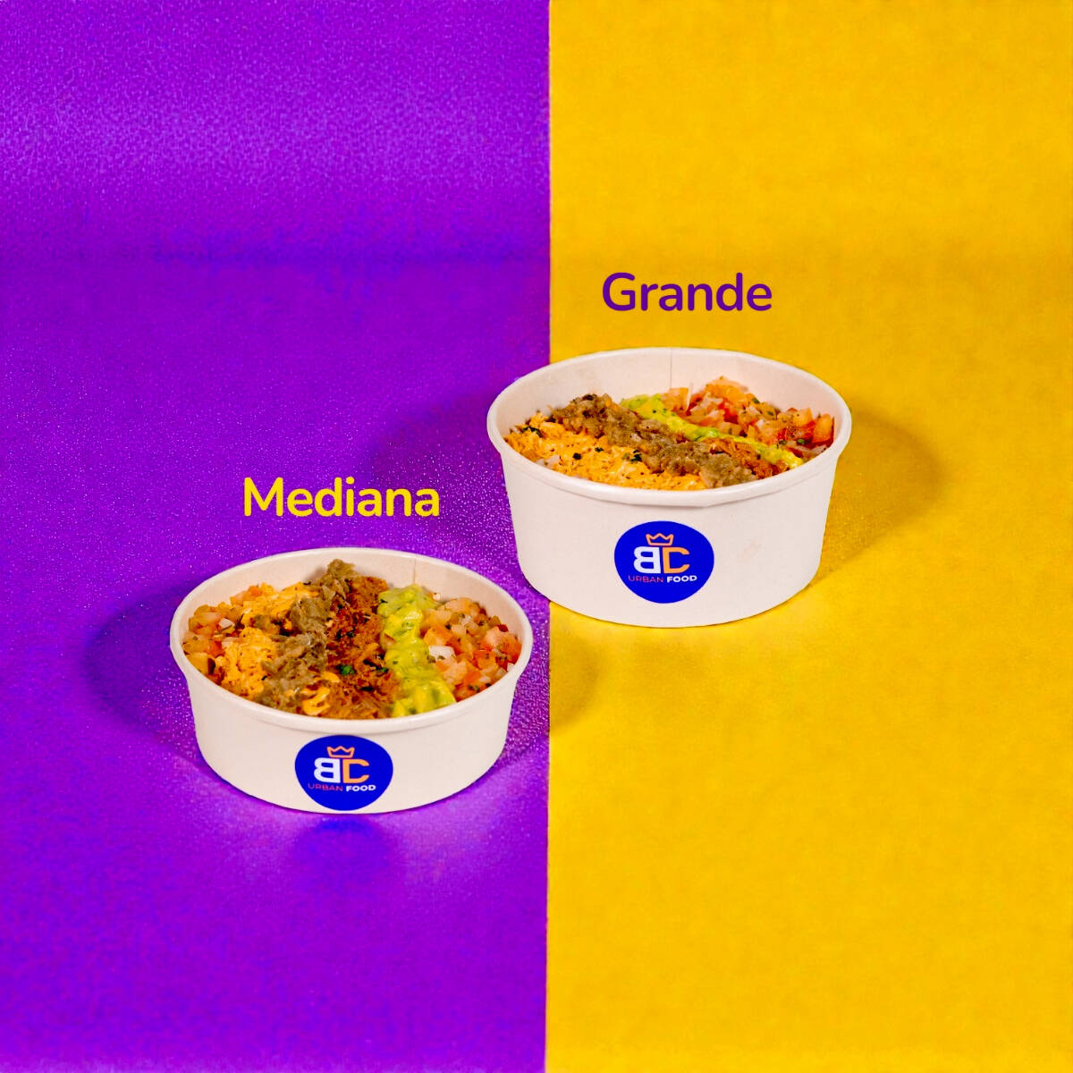 Bowld 170 gr de papas fritas, pollo y cane desmenuzada, guacamole, pico de gallo, japaleños, salsa urban de la casa y salsa cheddar.