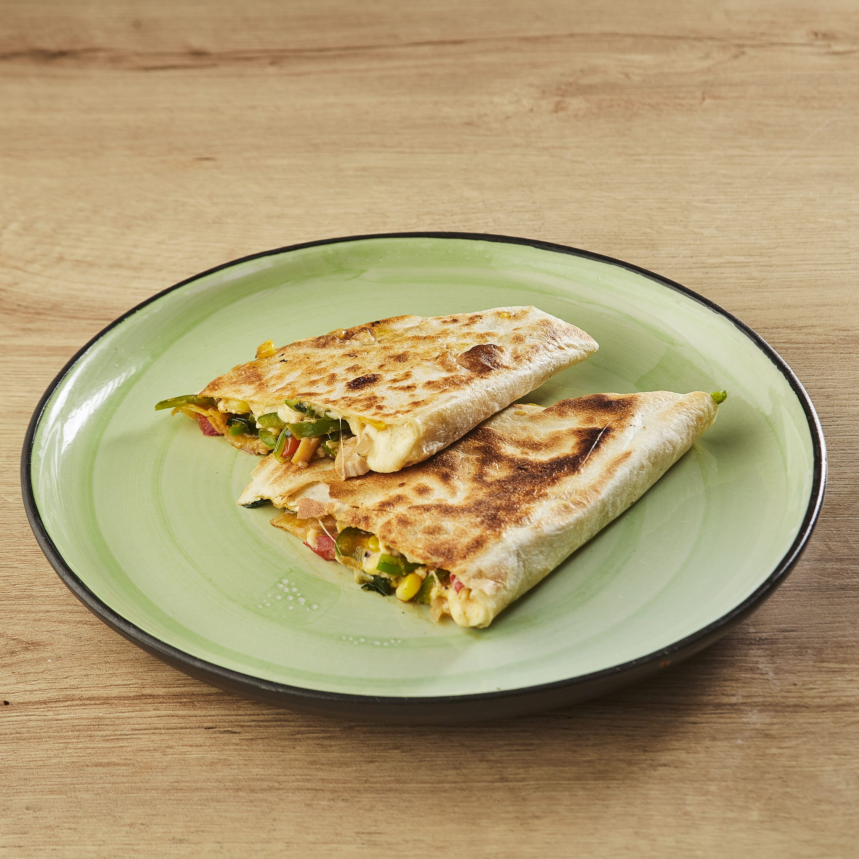 Una combinación de quesos fundidos, aderezo sour cream, maíz tierno, pimientos, champiñones, espinaca y cebollas salteadas. Todo envuelto en una tortilla recién tostada.