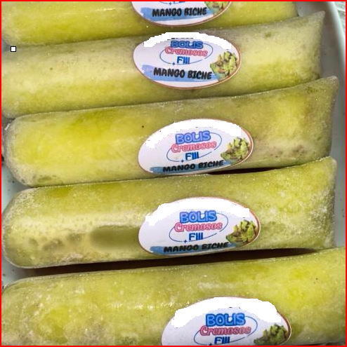 Boli de mango biche, boli de maracuyá, boli de coco, boli de vainilla chips, boli de chocolate, boli de kola con leche, boli de ron con pasas y boli de chicle.