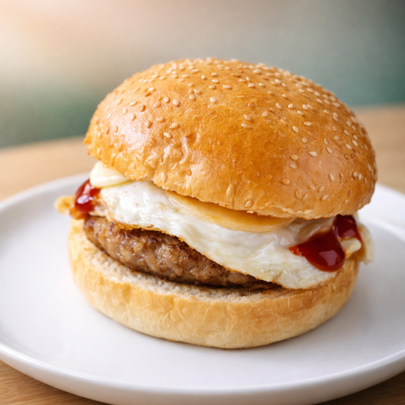 DELICIOSA HAMBURGUEZA ELABORADA CON JUGOSA CARNE DE RES , ACOMPAÑADA DE CEBOLLA FRESCA, TOMATE , SE COMPLEMENTA CON UN HUEVO FRITO Y SALSA DE TOMATE Y MAYONESA DENTRO DE UN ESPONJOSO PAN DE AJONJOLI , UNA COMBINACION PERFECTA PARA LOS AMANTES DE UNA BUENA HAMBURGUESA