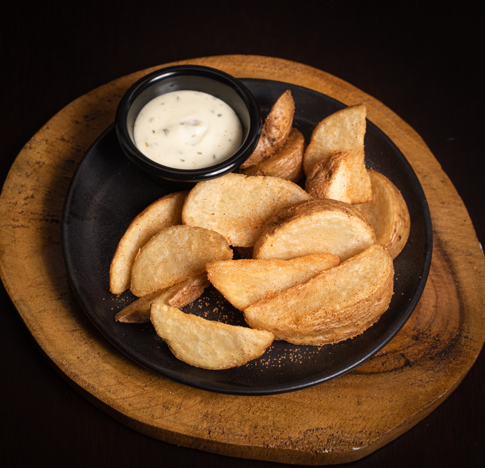 140 gr de cascos de papa, salsa Ranch, Mayochipotle o de tomate.