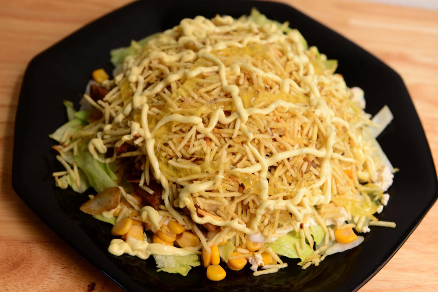 Lechuga, Cebolla, Tomate, Zanahoria y Salsa Tartara De La Casa.