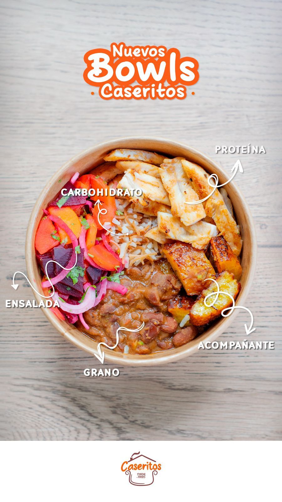 Bowl Lomo se puede acompañar con arroz blanco o de fideo, patacón o moneditas de madurito, ensalada verde o roja, Zaragosa o Lentejas