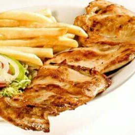 300 grs de pechuga, acompañado de papa francesa y ensalada.