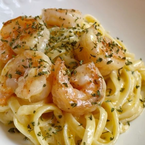 Pechuga carbonara, papas a la francesa y ensalada (lechuga, tomate, cebolla).