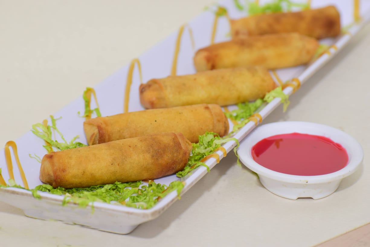 Arroz con pollo y cerdo con 3 lumpias y pool 1L.