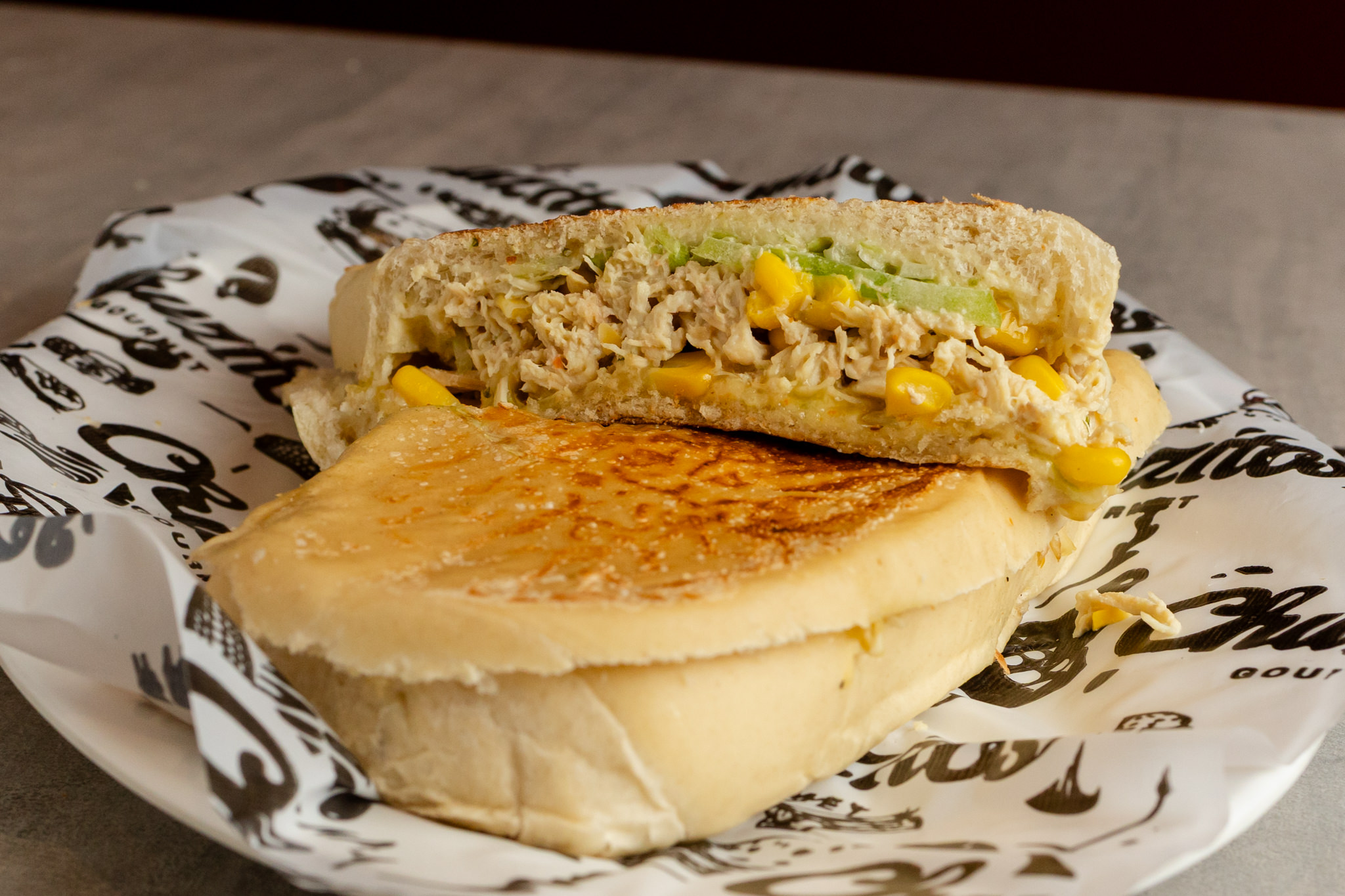Mazorca americana, pollo desmenuzado, papita chongo, queso costeño rayado, queso gratinado y salsa tartara.