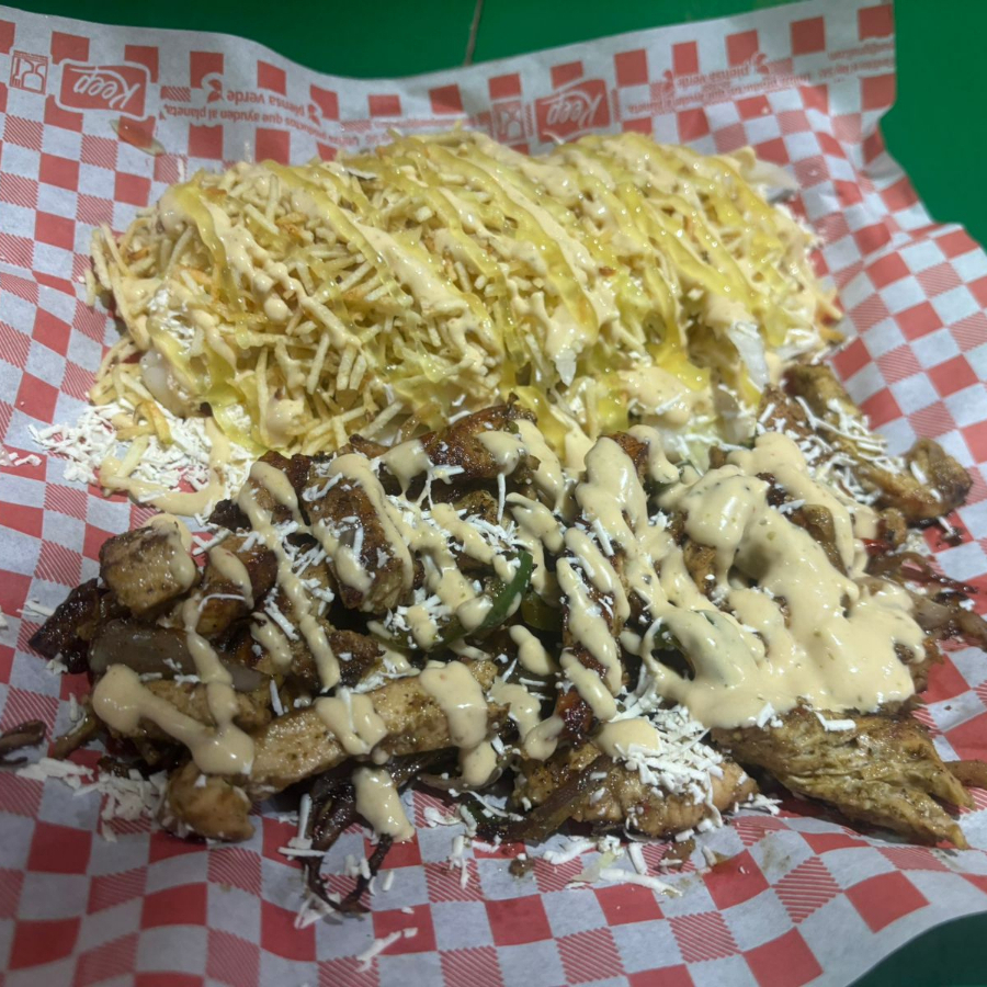 (Grill de Salchicha + Chorizo + Pollo + Papa + Queso + Maiz + Lechuga + Papitas de Perro + Salsa de Casa)