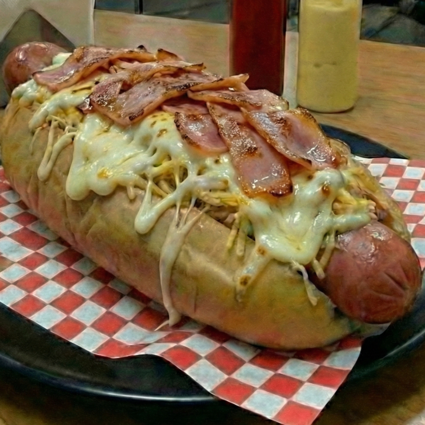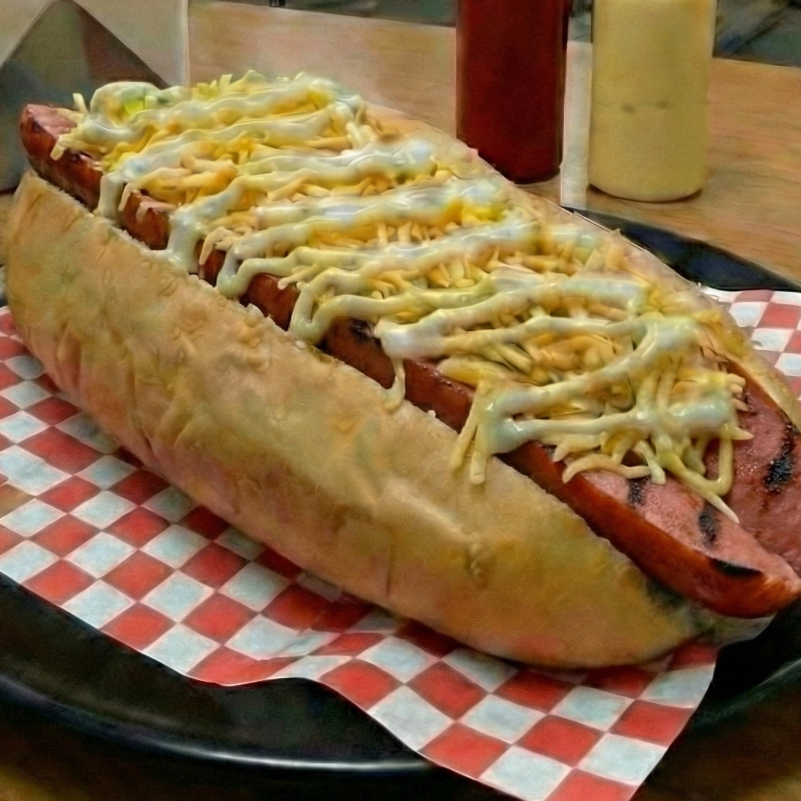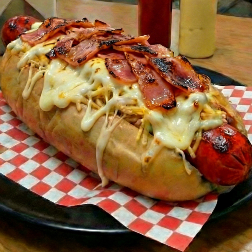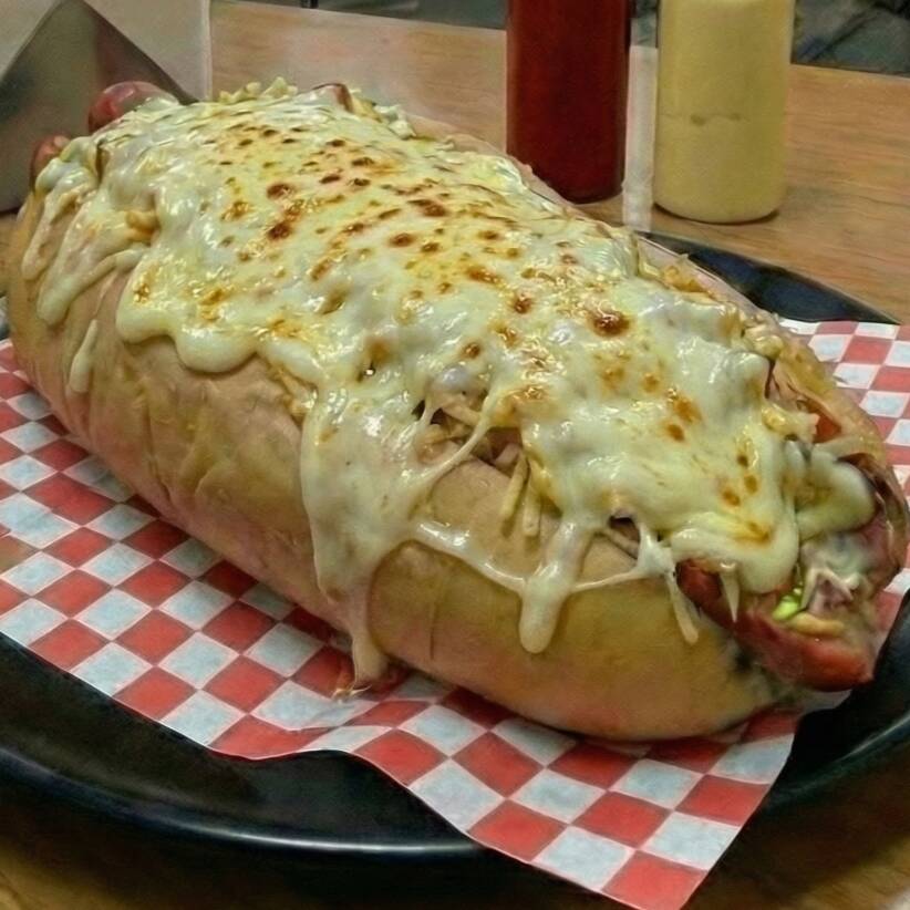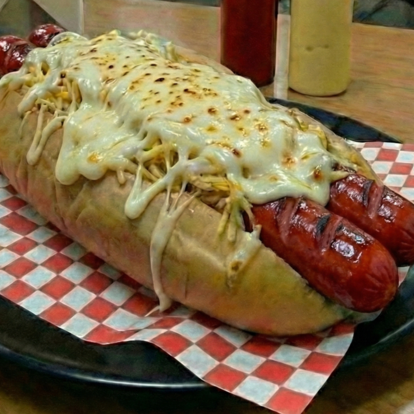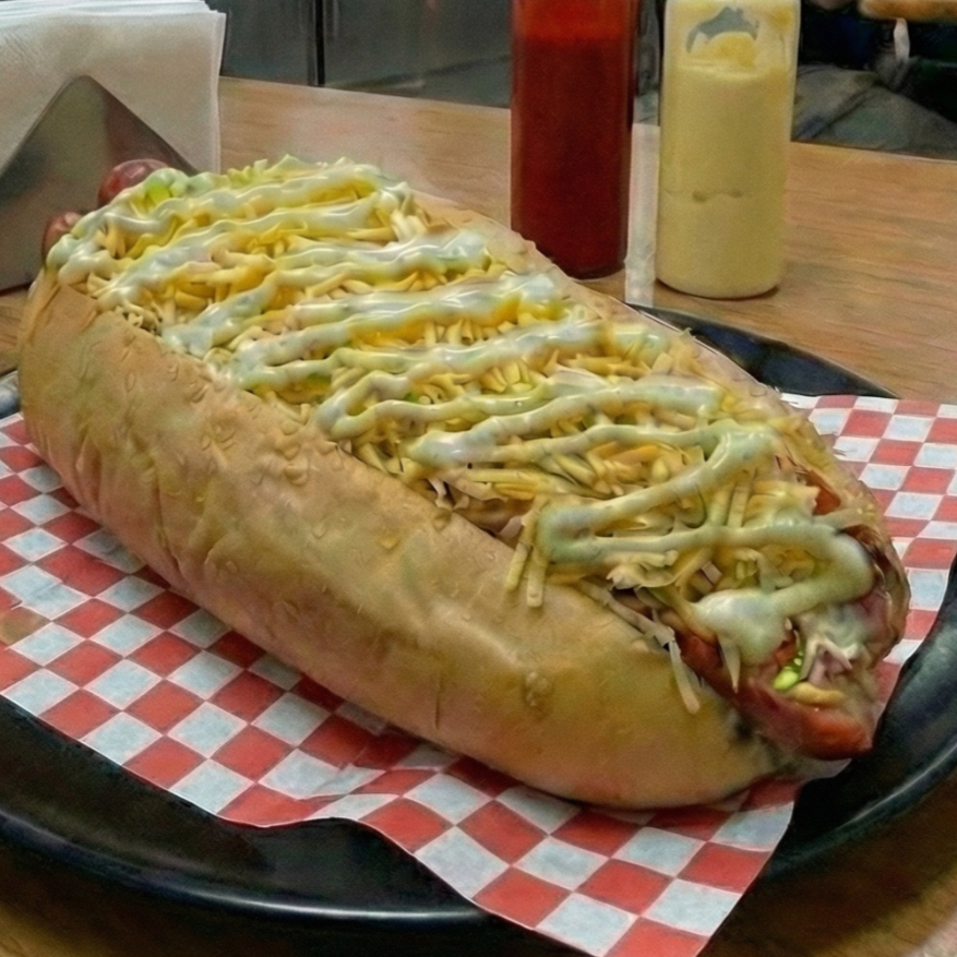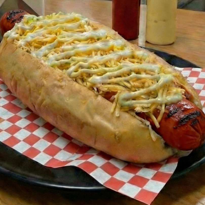 Pan de perro queso costeño lechuga salchicha americana virutas de papa queso mozzarella jamón