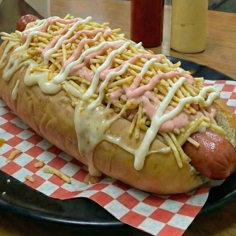 Pan de perro queso costeño lechuga doble salchicha suiza virutas de papa queso mozzarella