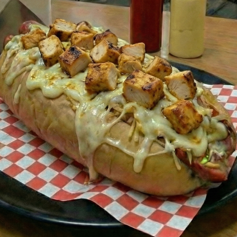 Pan de perro queso costeño lechuga salchicha manguera virutas de papa queso mozzarella pollo