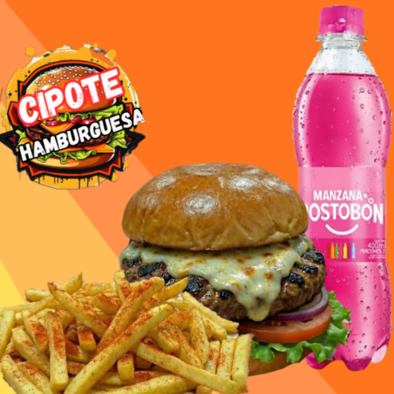 Hamburguesa de Carne*1 + Papas Francesas*1 + Gaseosa Postobón 400 ml*1