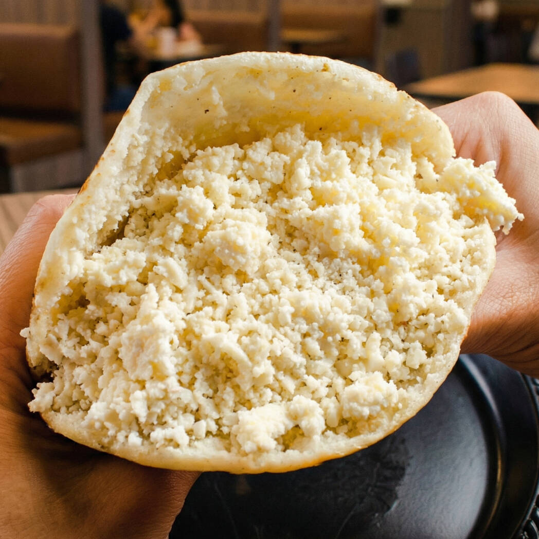 Arepa de maíz rellena de queso costeño
