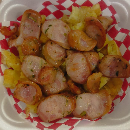Chorizo Antioqueño, Patacón Picado, Limón, Salsas y Bebida 250 ML