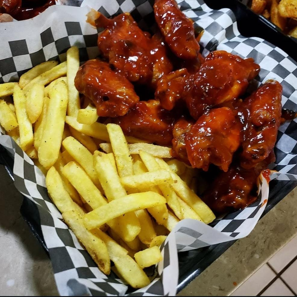 5 Alitas BBQ, Con exquisita salsa DE-LEITE, Papas a la Francesa 125 Gr, y 1 Bebida 250 ML.