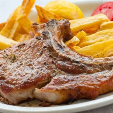 Chuleta de Cerdo 150 Gr, Lomo de Cerdo Ahumado 150Gr, Papas a la Francesa 125 Gr, Ensalada, Salsa de la Casa y Bebida 250 ML.