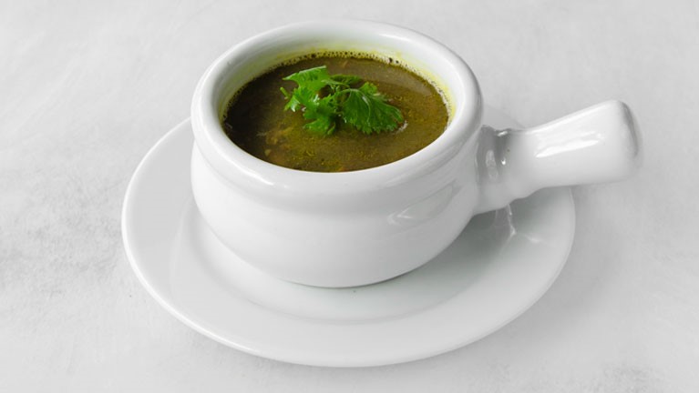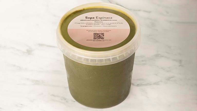 Sopa de espinaca. ¡Caliéntala a fuego lento! Dos porciones sugeridas.