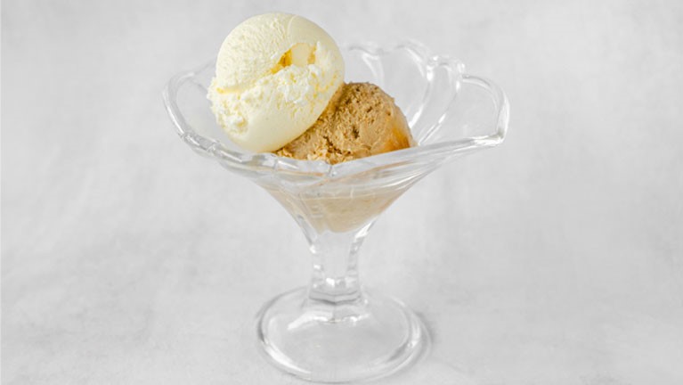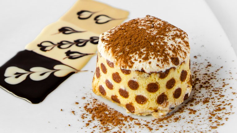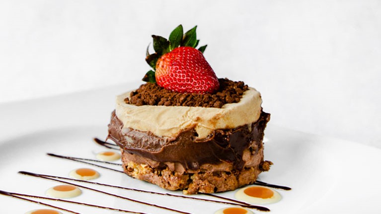 Bizcochuelo bañado con un toque de licor que exalta el sabor del helado de Vainilla, Coffee Toffee y Chocolate. Combina sutilmente con salsa de chocolate, nueces y crema chantilly.