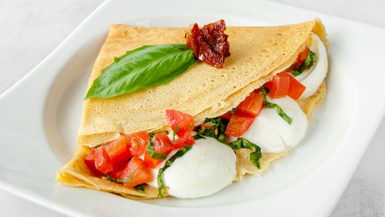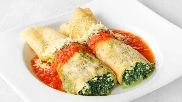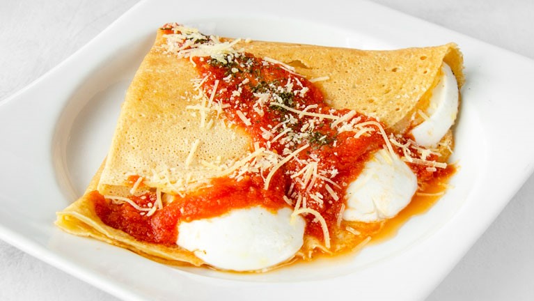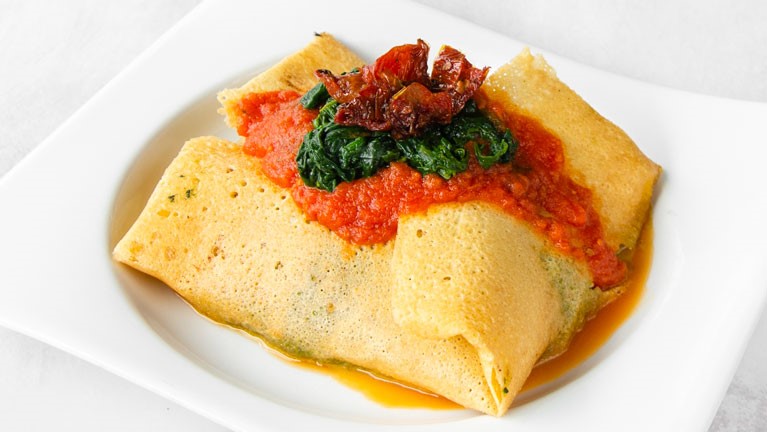 Crepe con espinaca, queso ricotta y salsa napolitana o salsa rossé.