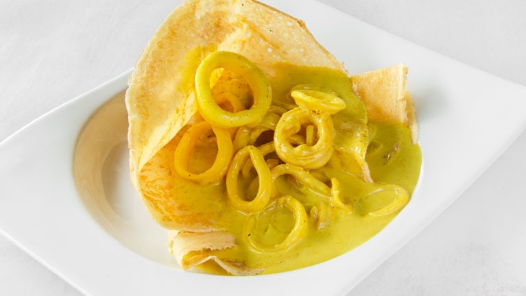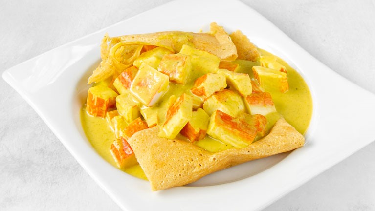 Crepe de palmitos de cangrejo en nuestra salsa curry.