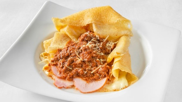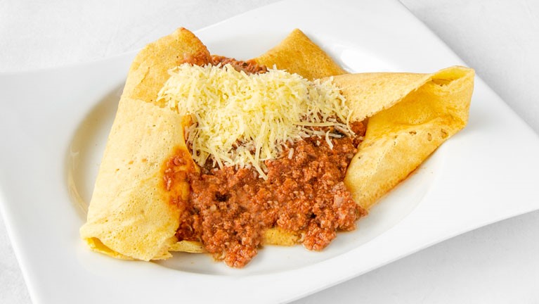 Crepe de boloñesa + queso = la forma más fácil de recordarnos.