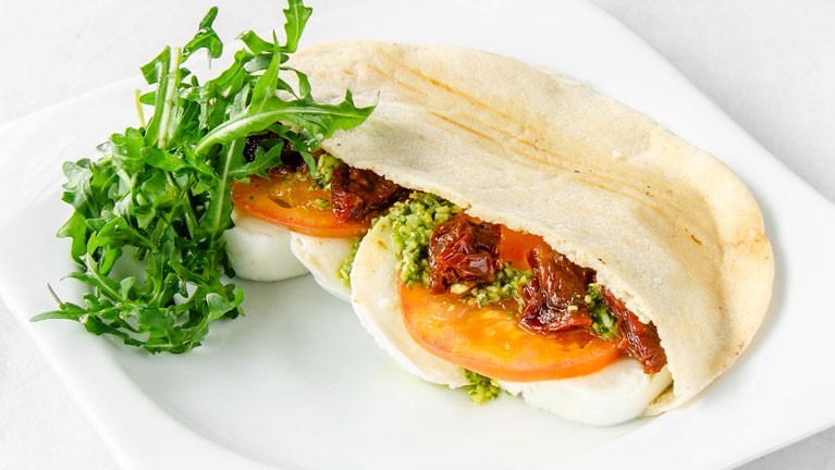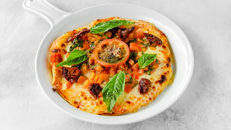 Espinaca, queso, albahaca, tomates frescos, tomates secos y salsa napolitana.