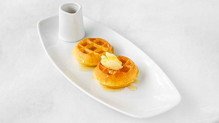 Mini Waffles con mantequilla y miel del de Montes de María.