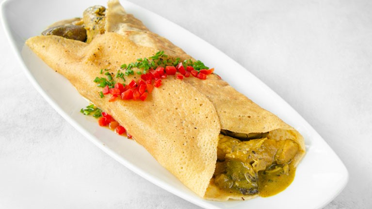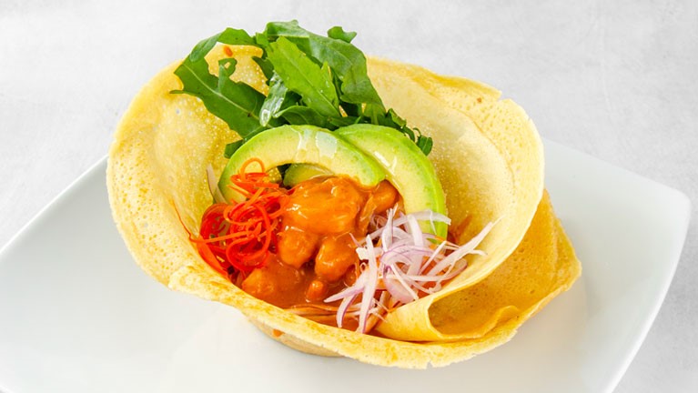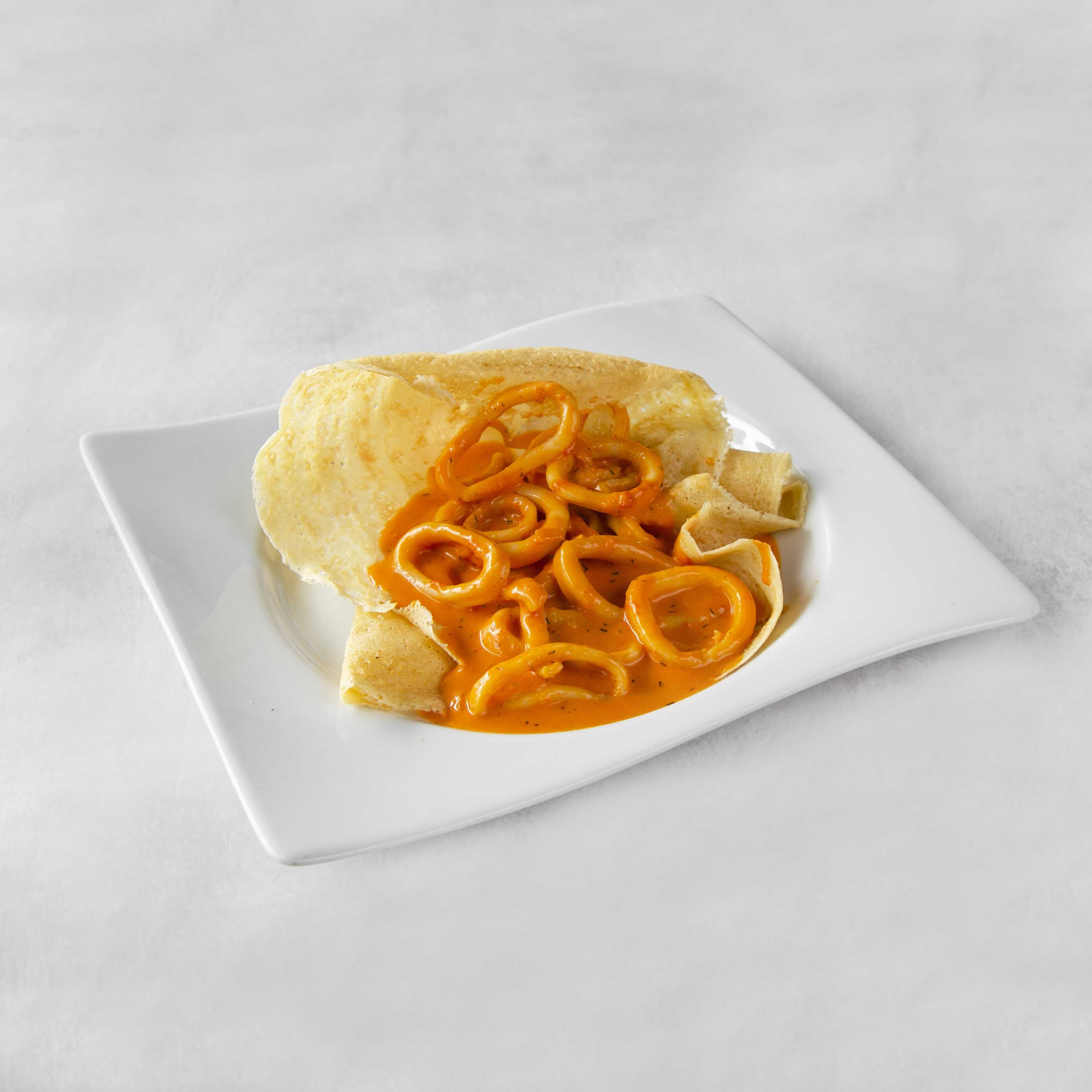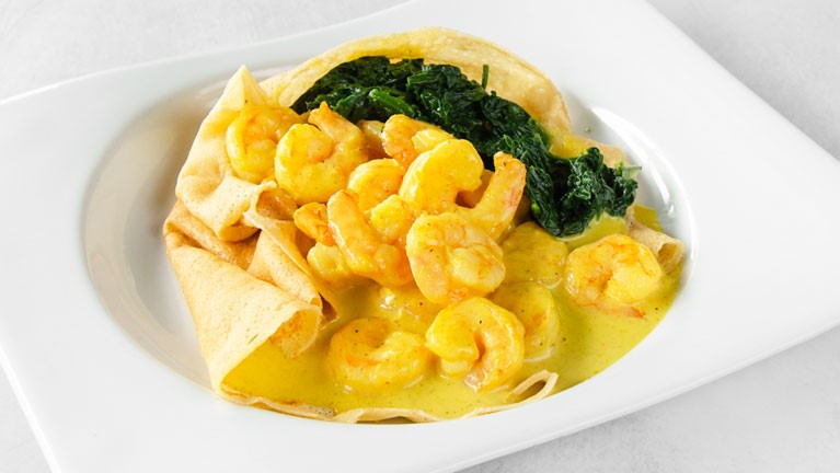 Crepe de camarones + espinaca en nuestra salsa curry.