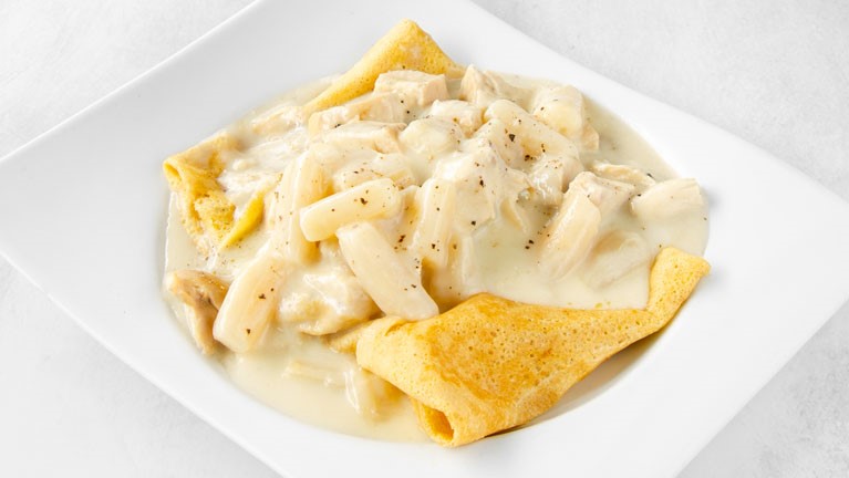 Crepe de pollo + queso + espárragos = uno de nuestros clásicos.