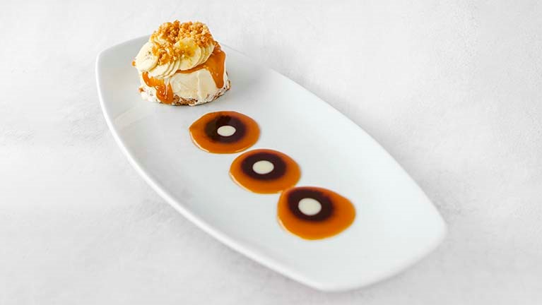 Donde el helado de Vainilla en crocante de macadamias y almendras, las tajadas de banano y la salsa de caramelo, se unen para darle sentido y sabor a la vida.